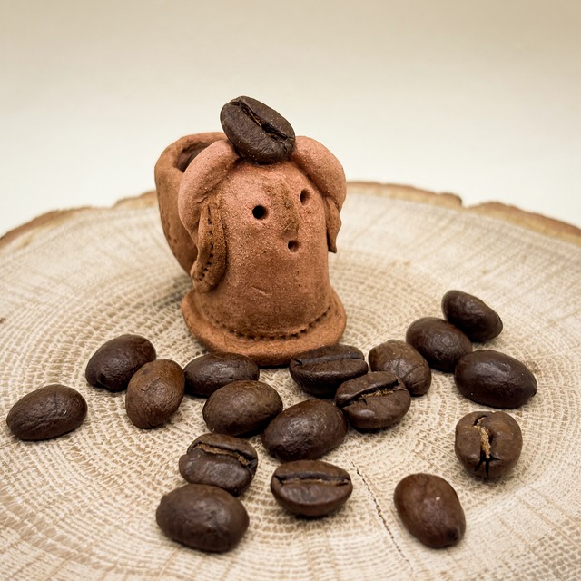 小さな手乗りサイズの「珈琲豆はにわ」。 本物の焙煎豆を持った可愛い手乗りはにわです。 珈琲好きの方、ご自宅やプレゼント用にいかがですか? ■素材:粘土 粘土で一点一点手作りしています。 ■サイズ 高さ:約30-40mm/幅:約20mm/重さ:約5g ※ディスプレイ用の小物・土台は付属しません。 ■ お手入れ/取り扱い注意事項 汚れた場合は、柔らかい布で軽く拭いてください。 防水ニスを塗ってありますが、水に常に濡れている場所は避けて下さい。 ■梱包について 専用の箱に緩衝材と一緒に入れて、丁寧に梱包いたします。 ■ 発送・注文に関する情報や注意事項 代金のお支払い確定後、1-2日以内に発送いたします。 迅速な発送を心がけます。 お届け日時についてのご要望がございましたら、注文時にお知らせください。 ■ その他の情報や注意事項 商品は原則個体別に撮影して出品しておりますので、こちらの商品写真に写っているものをそのままお届けします。 手作りのため、風合いやサイズに若干の個体差がありますので、商品写真を元にご判断いただければ幸いです。 ご質問やご相談は、ショップのお問い合わせからお気軽にお尋ねください。 あなたの生活の一部に、そっと「はにわ」を添えて頂けたら嬉しいです。