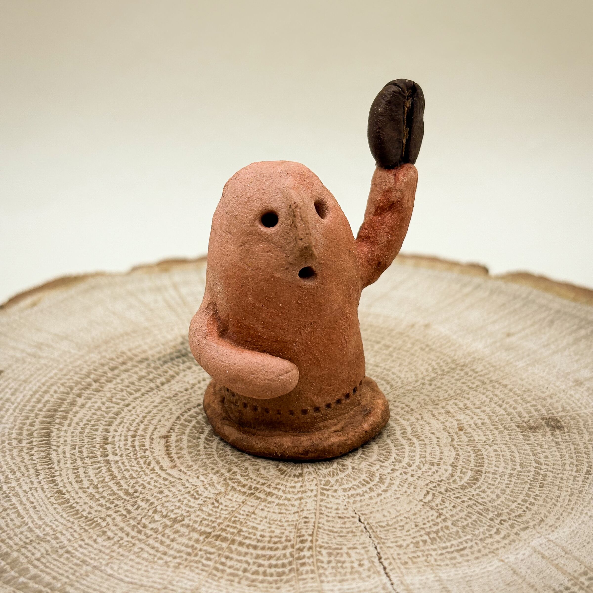 本物の焙煎豆を持った可愛い手乗りはにわです。