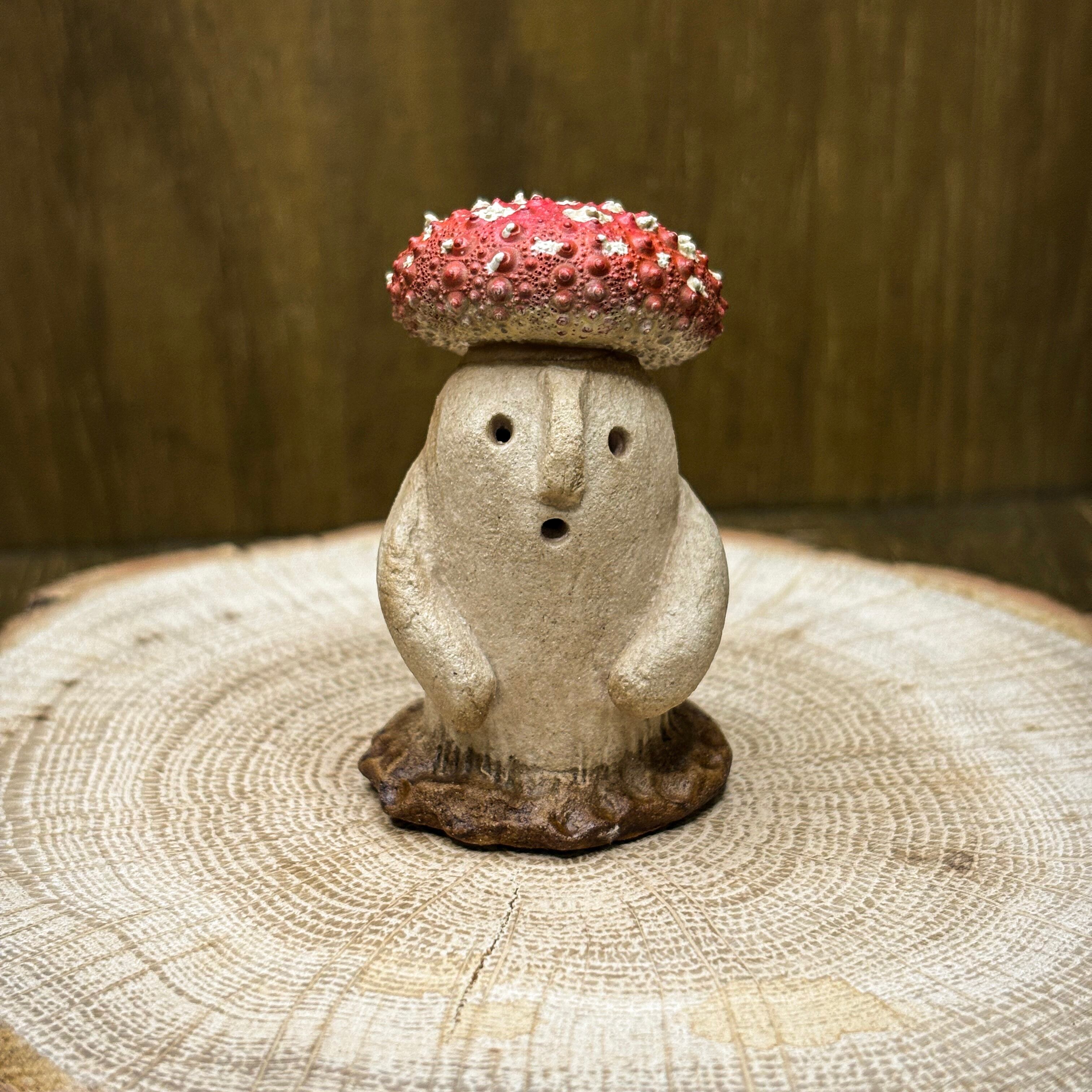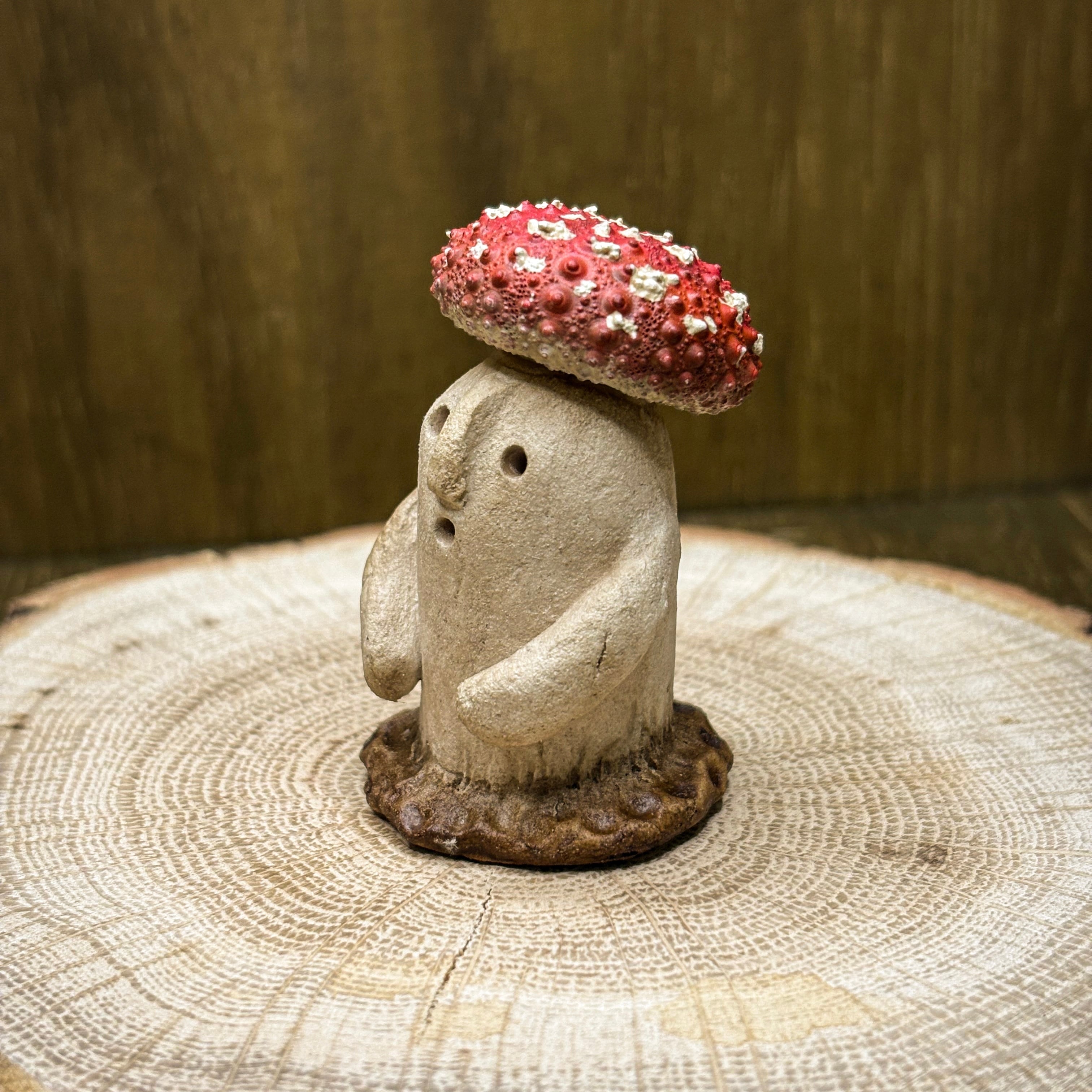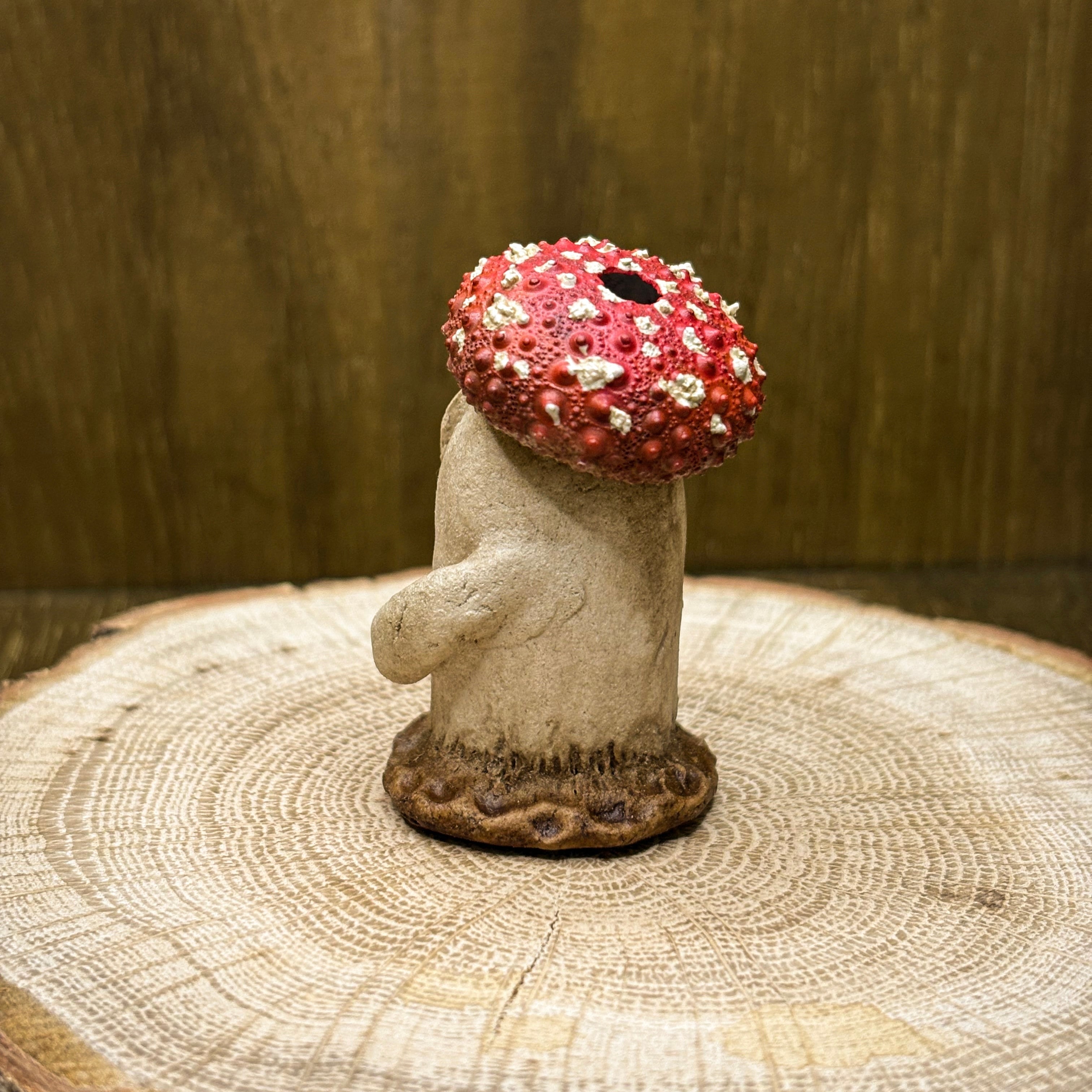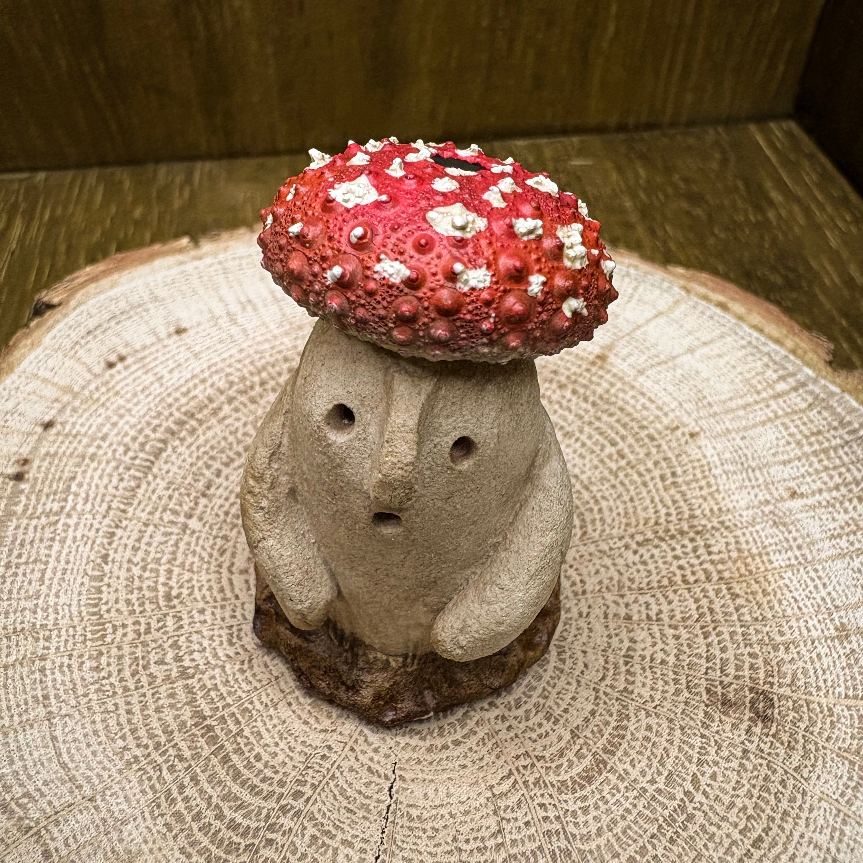 キノコの傘には本物のウニの殻に絵の具で着彩しています。