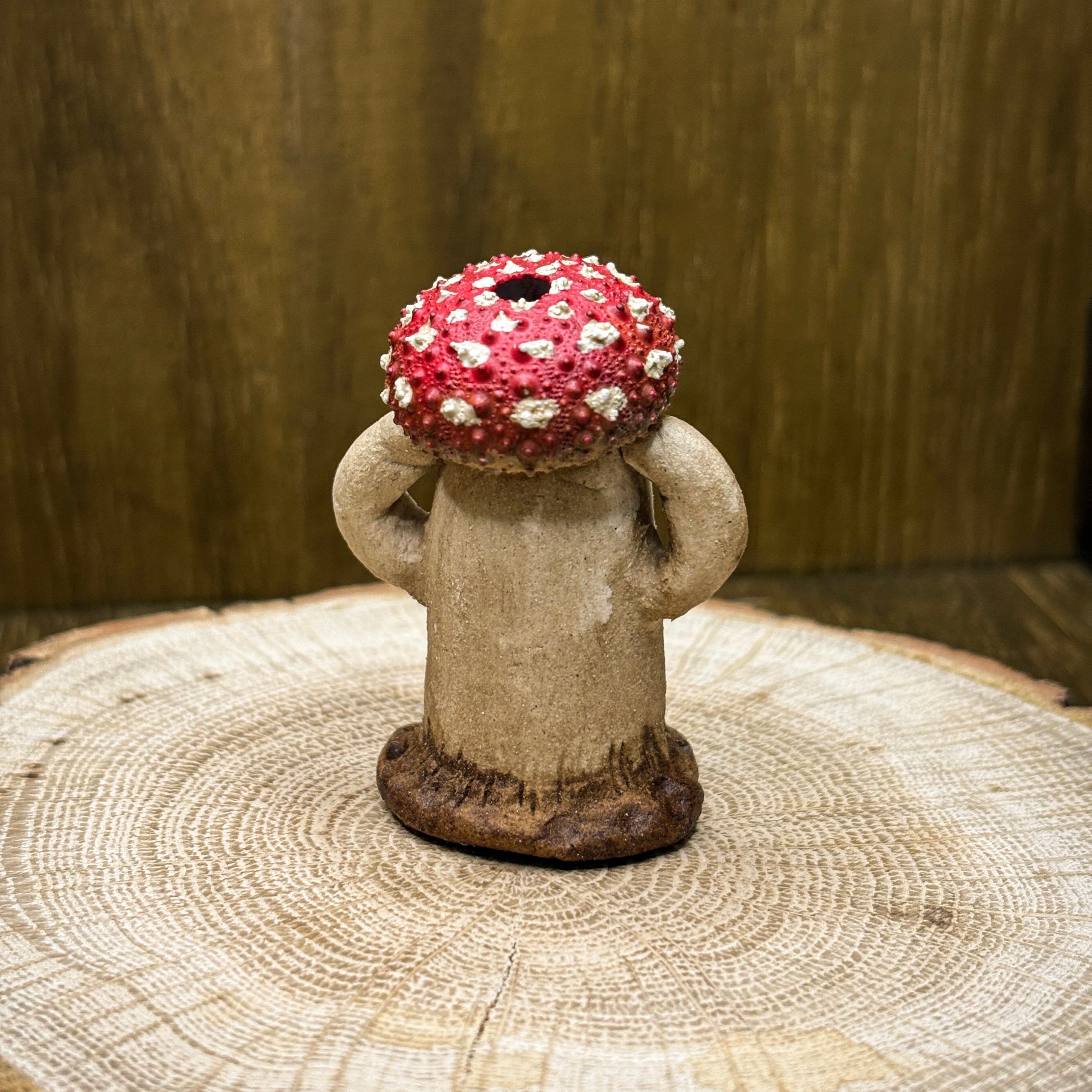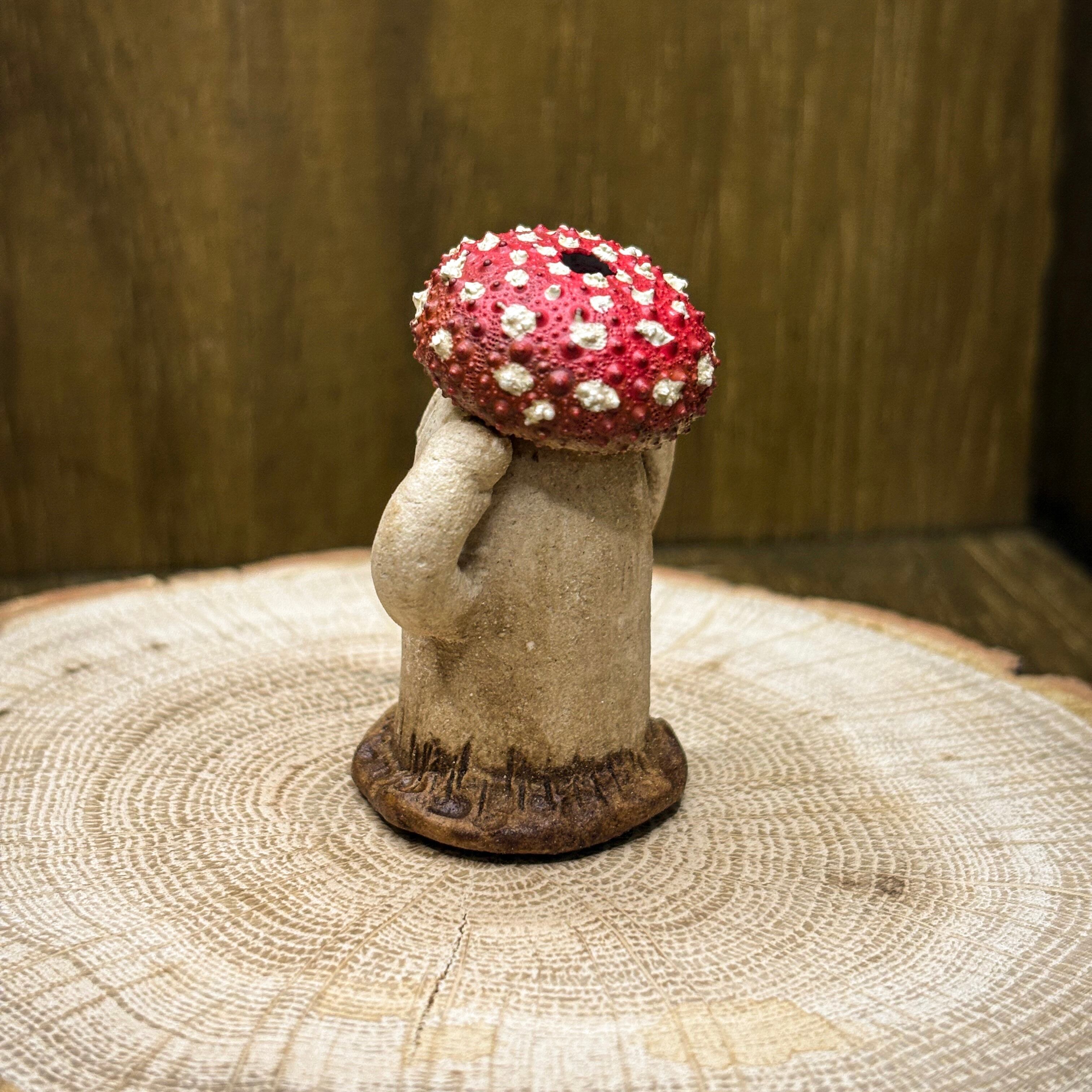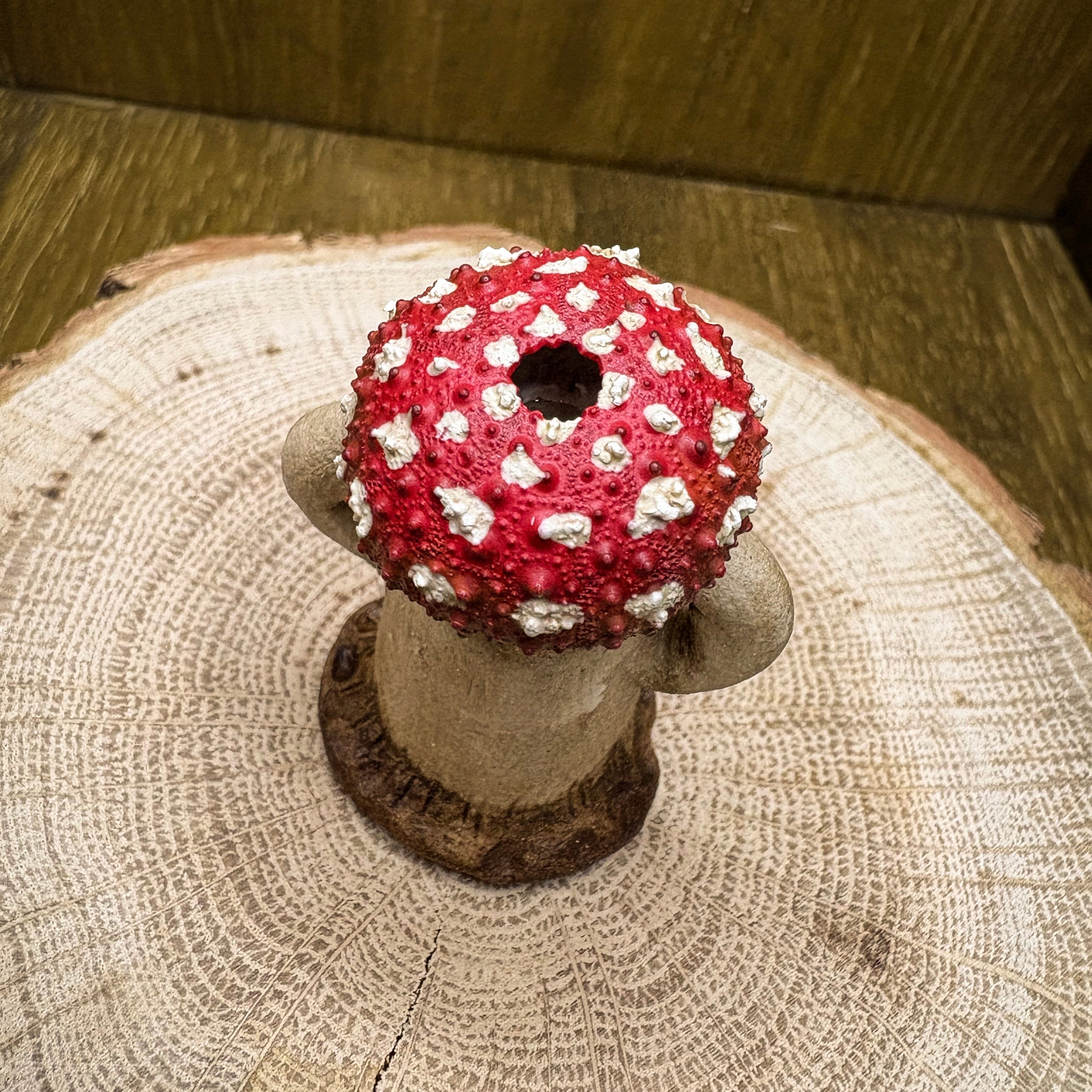 キノコの傘には本物のウニの殻に絵の具で着彩しています。