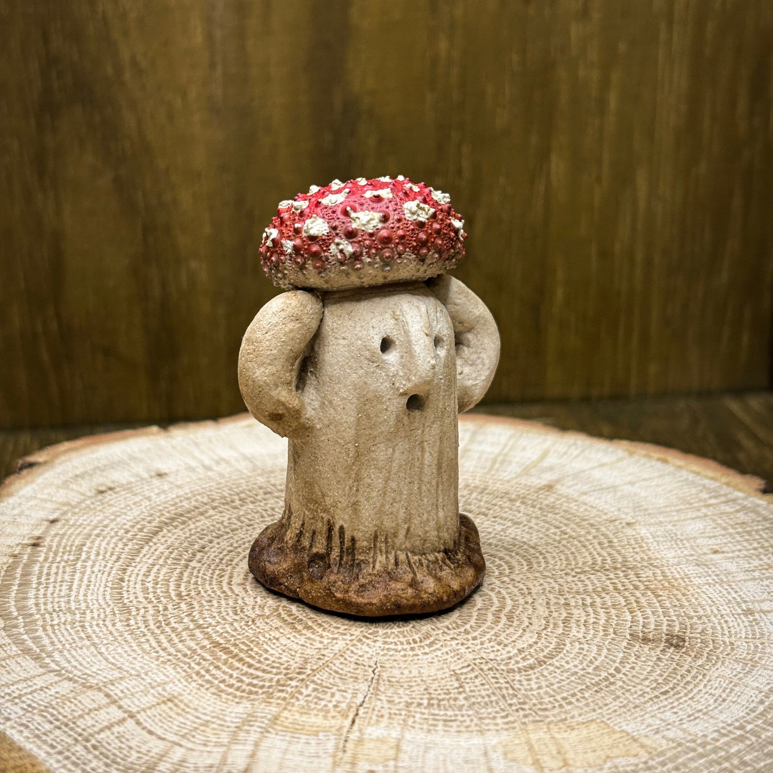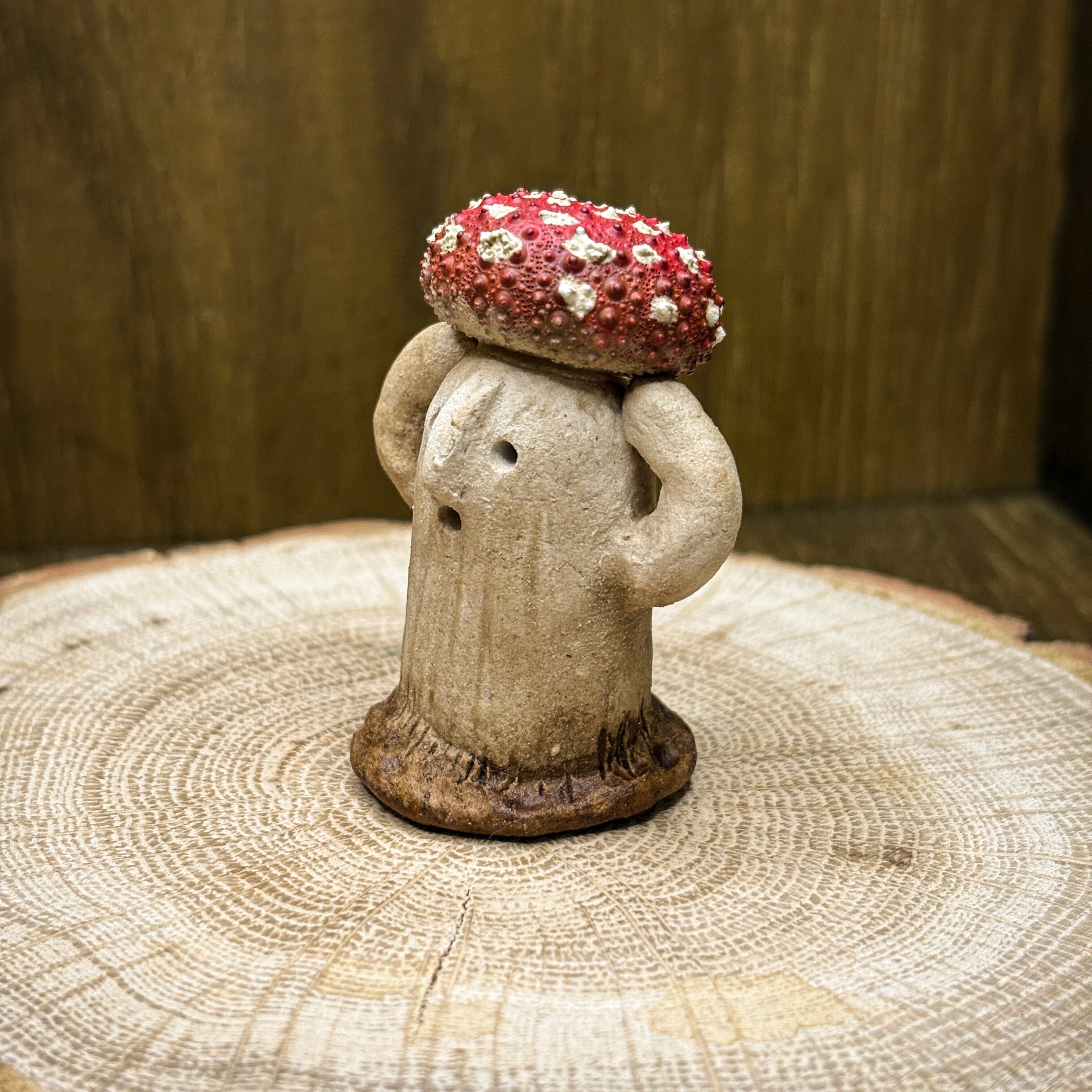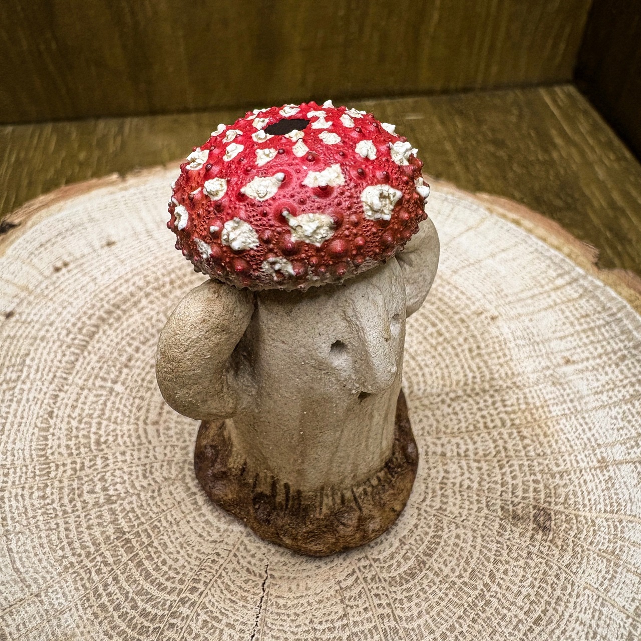 キノコの傘には本物のウニの殻に絵の具で着彩しています。